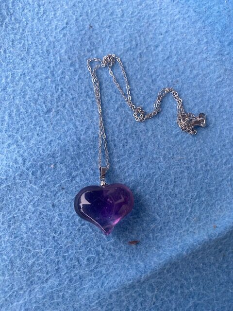 Das Amethystherz ist geschwungen, gestiftet und hat die Grösse 25x20mm.