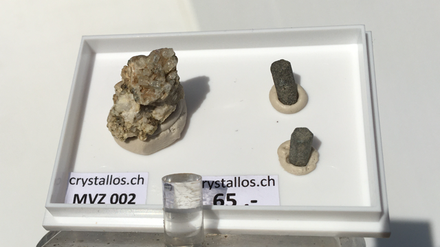 Milarit-Kristalle,chloritig, grösster Kristall(Doppelender) 8mm, Fundort: Vorder Zinggenstock, Oberaar